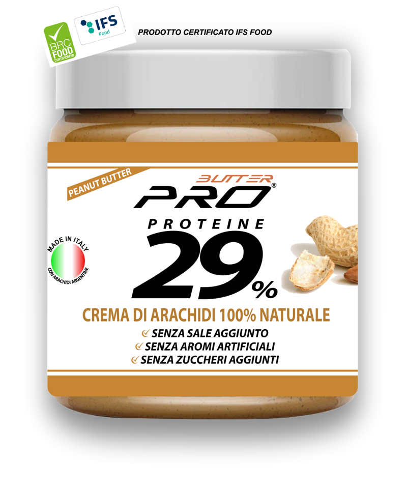 preziosissima qualità nutrizionale.Crema di arachidi 100% naturale Butter Pro spalmabile e versatile, ideale per guarnire i tuoi snack!